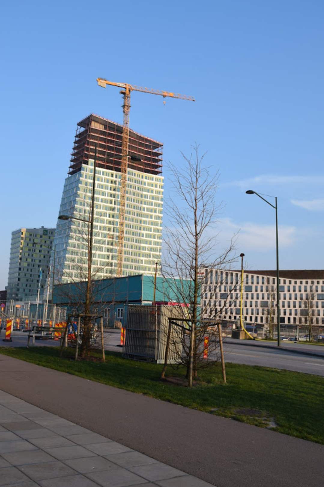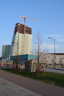 Das Hotel ist das kleine Gebäude hinter der riesigen Baustelle. Nach Fertigstellung des riesigen Bürogebäudes wird man vom Hotel keinen "tollen" Ausblick mehr auf die Öresundbrücke haben...