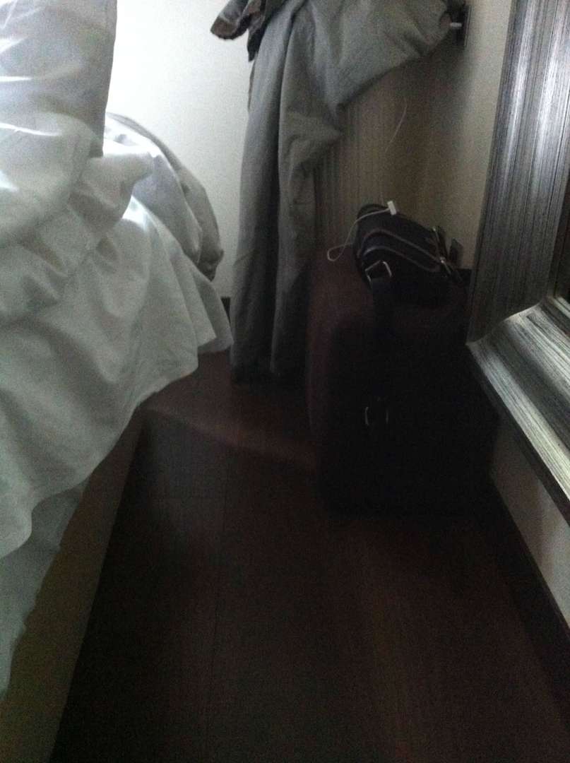 Minihocker, Hose über Stehlampe