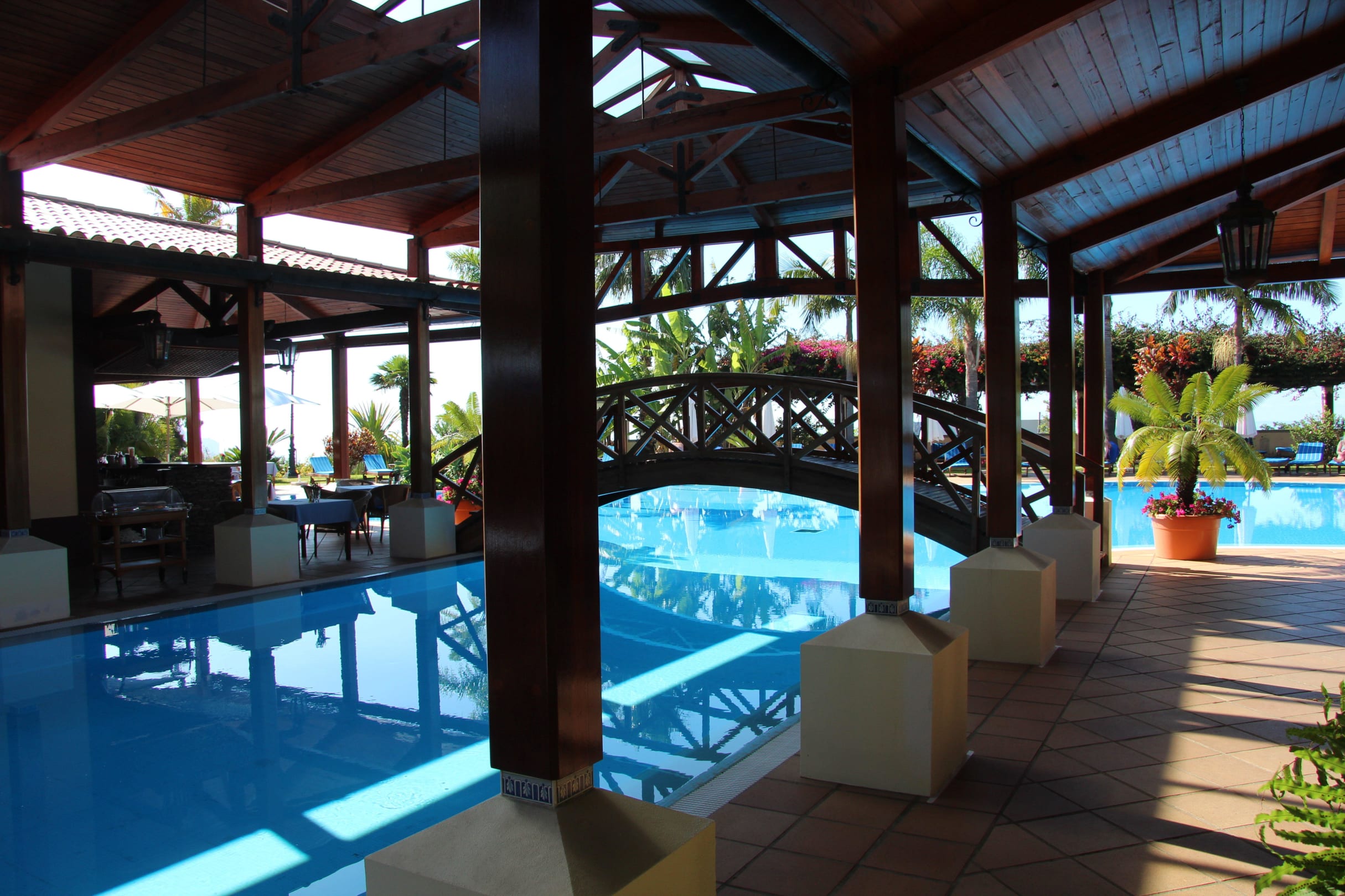 Der Pool ist teilweise überdacht