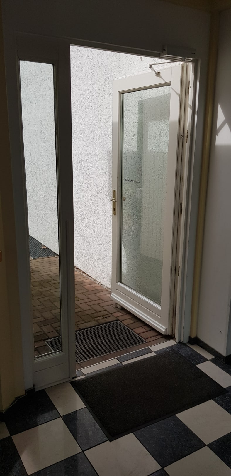 AußenansichtTür zum Parkplatz steht den ganzen Tag offen und es ist kein Hotelpersonal im Objekt.