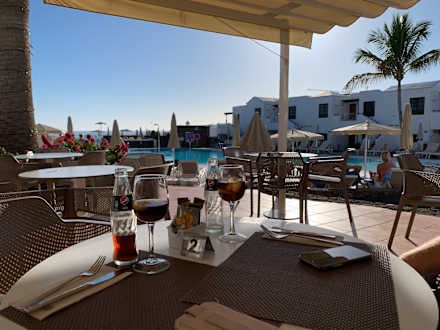 GastroAussenterasse . Hier wird morgens gefrühstückt.Während des Tages gesnackt oder getrunken.