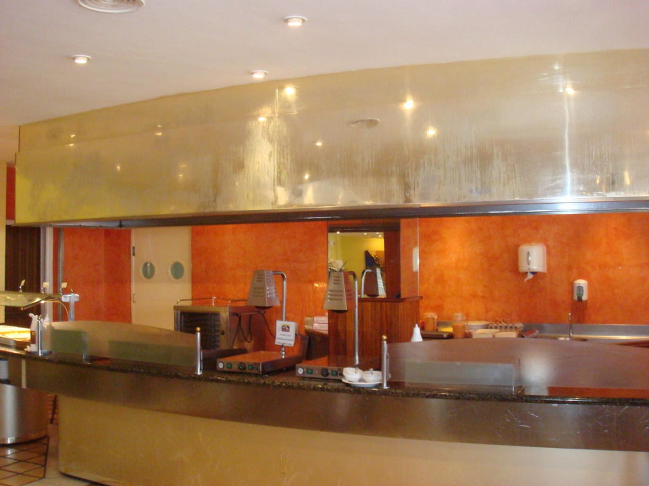 Die Essensausgabe. Völlig siffig... vermutlich war die obere Verblendung mal goldfarbig. Nun kann man Fett und Dreck herunterlaufen sehen...