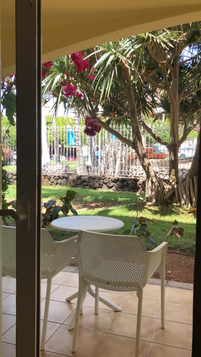Terasse, die durch Wände zu den andern Terassen abgegrenzt ist.