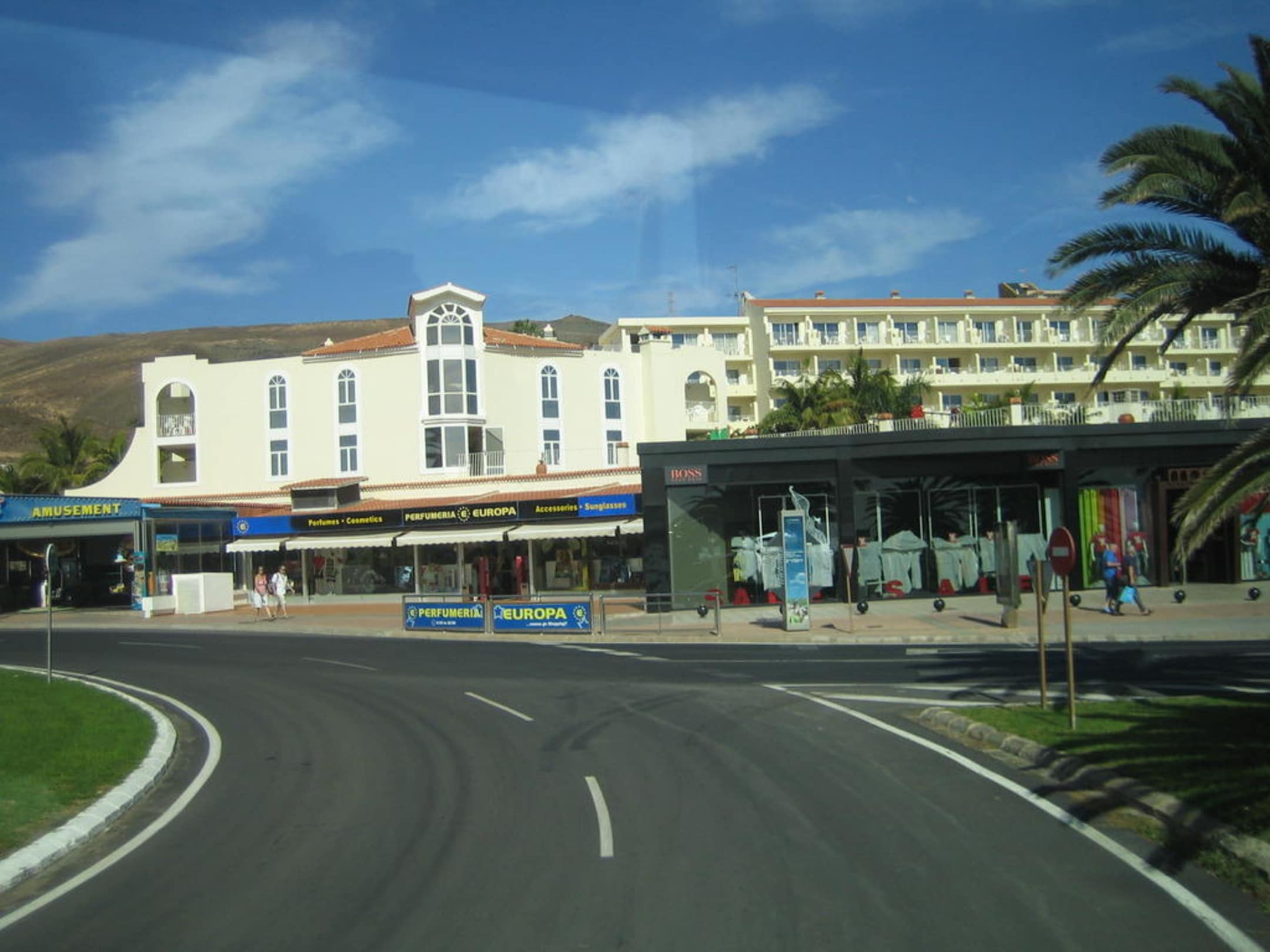 Hotel BuganvillaAnsicht des Hotels vom Verkehrskreisel. Im Vordergrund rechts sieht man die Einkaufsmeile