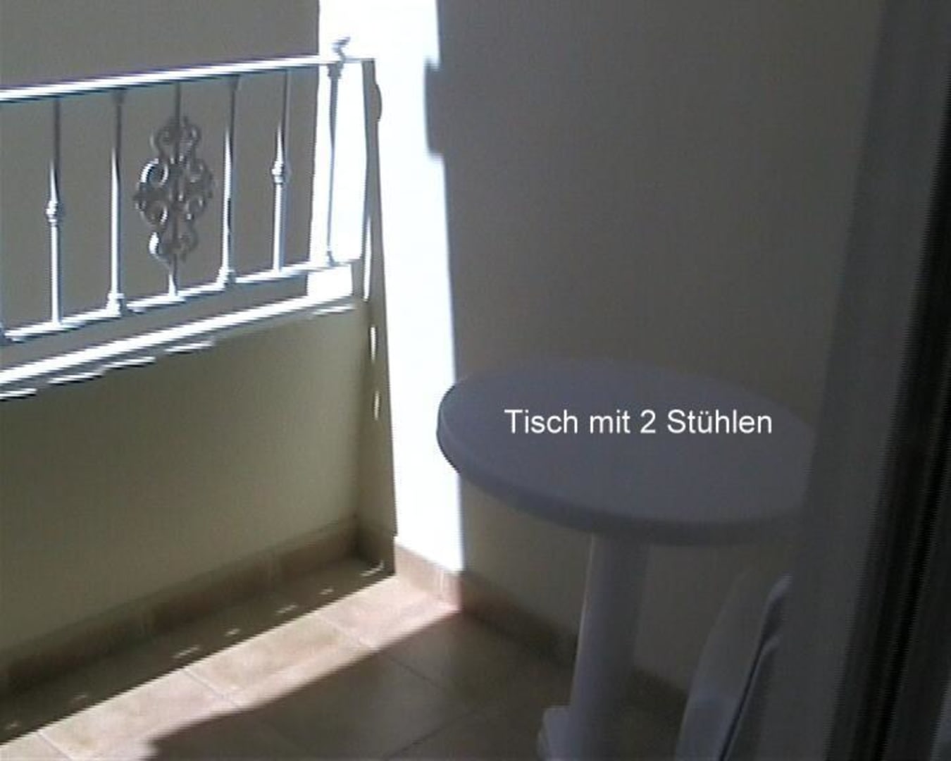Unser Balkon Dort rechts auf dem Foto sieht man einen Tisch mit 2 Stühlen.