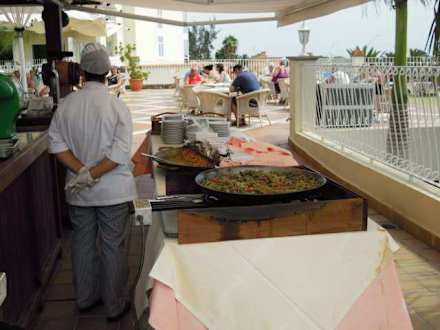 Paellazubereitung an der Poolbar
