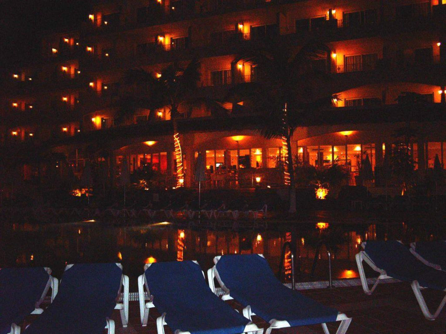 Hotel und Pool bei Nacht