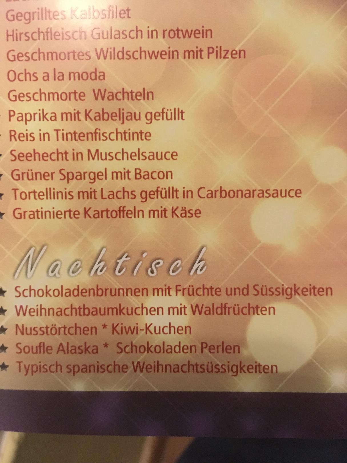 Silvestermenükarte