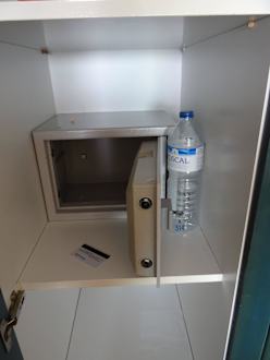 Der Safe. Für den Safe bekommt man noch einen Schlüssel, sehr störend... Zahlencode wäre besser.