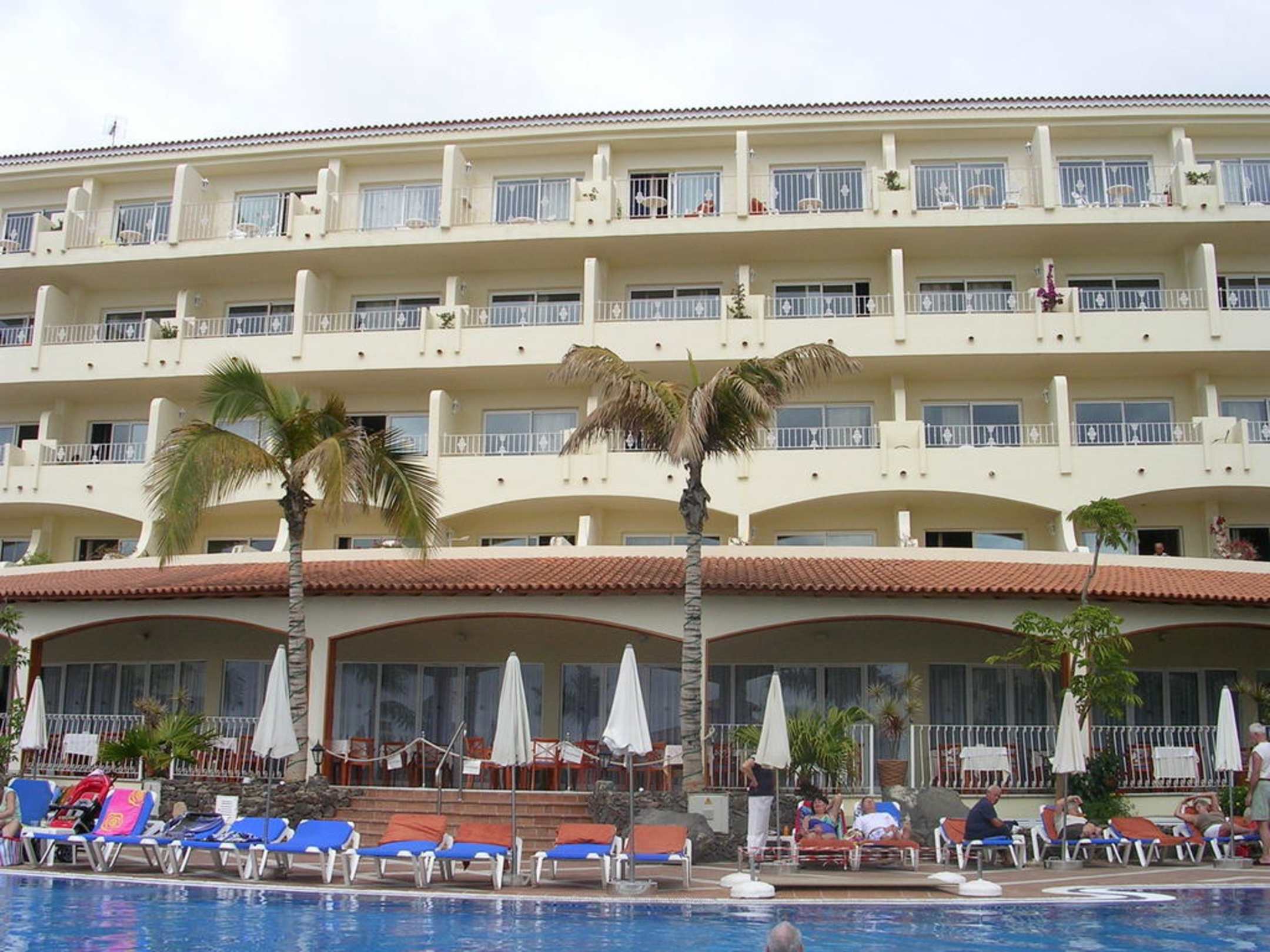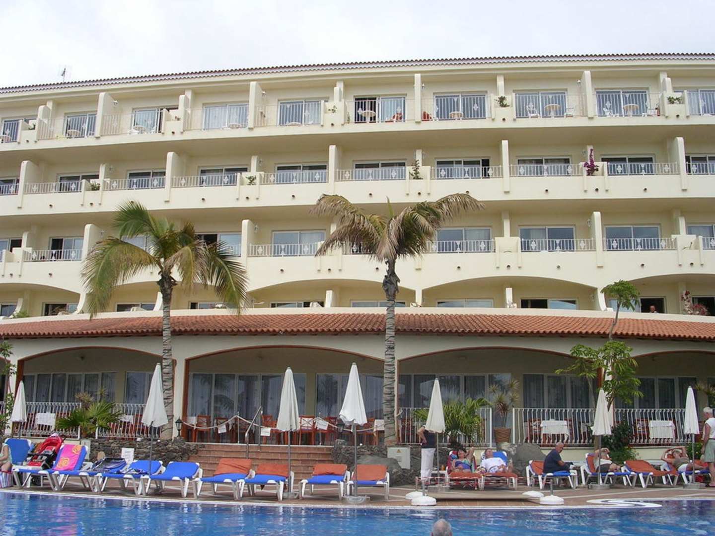 Blick über den Pool zum Restaurant