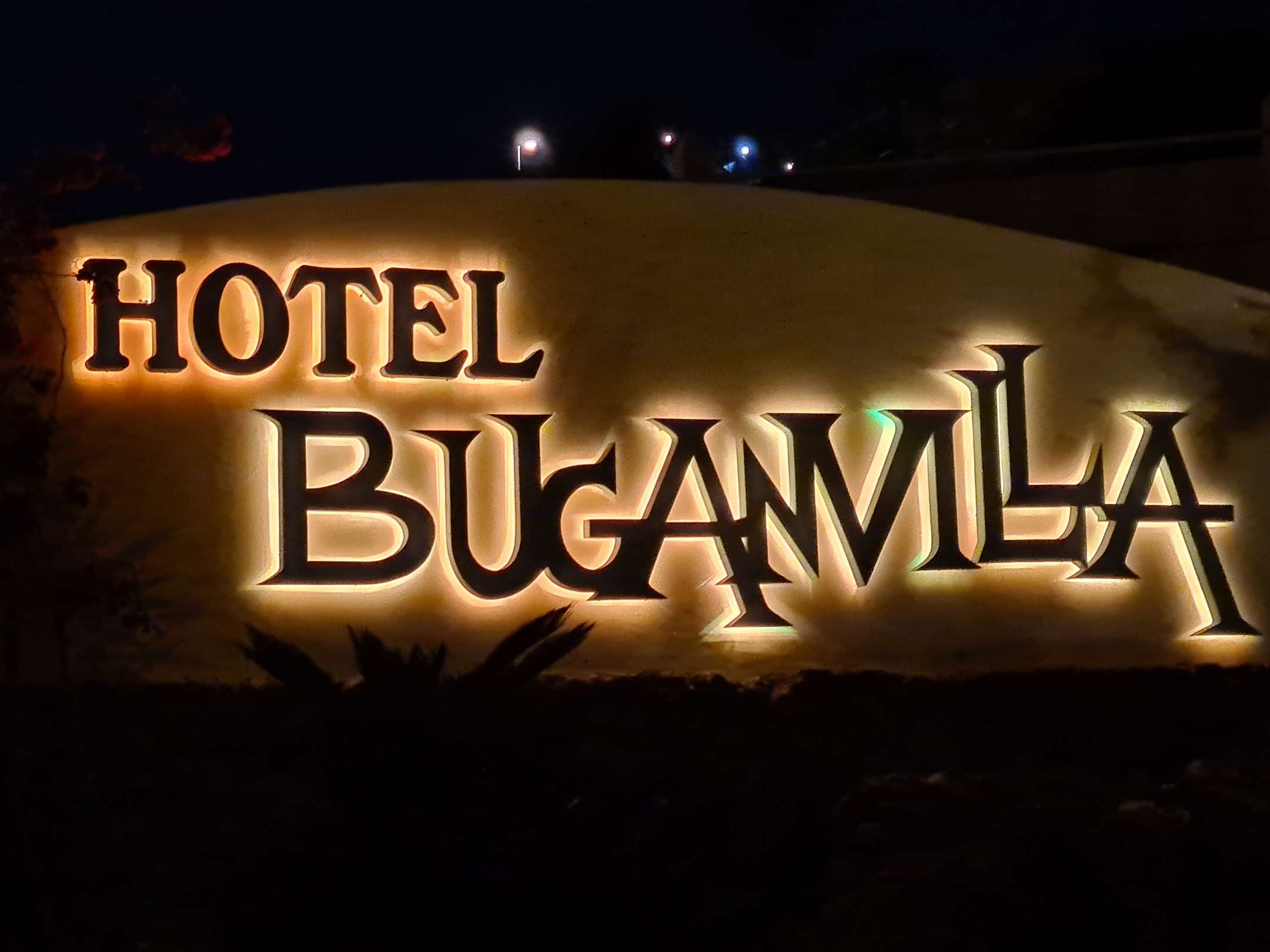 Der Hoteleingangsbereich bei Dunkelheit