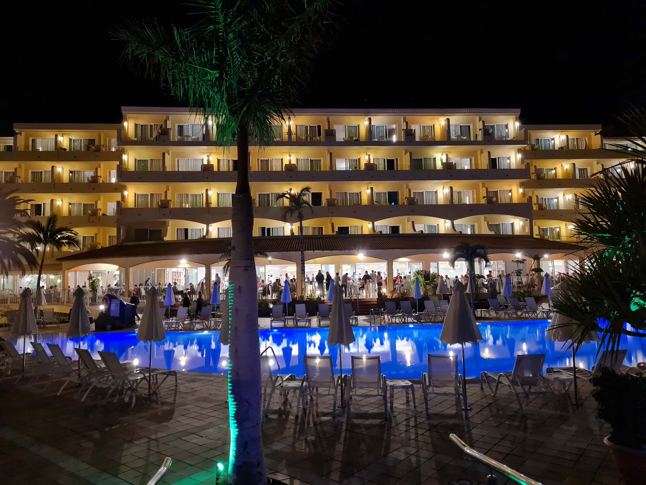 Pool und Hotel bei Nacht