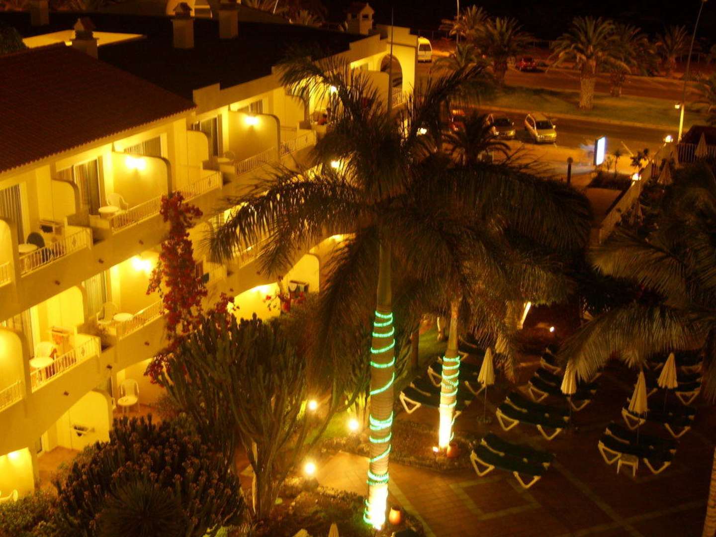 Kreisverkehr vor dem Hotel bei Nacht