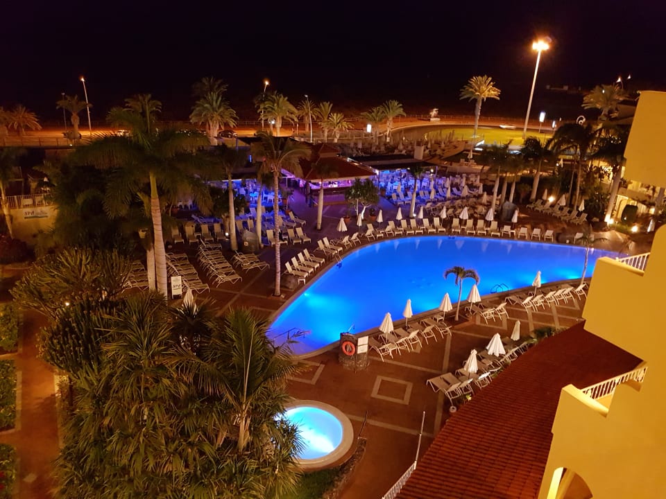 Links vom Pool ist der Whirlpool mit einer Wassertiefe von 30cm (!) erkennbar. Ich habe, außer Babys, nie jemanden darin gesehen. Zentral im Bild ist die Poolbar mit Sitzmöglichkeiten links und rechts davon.