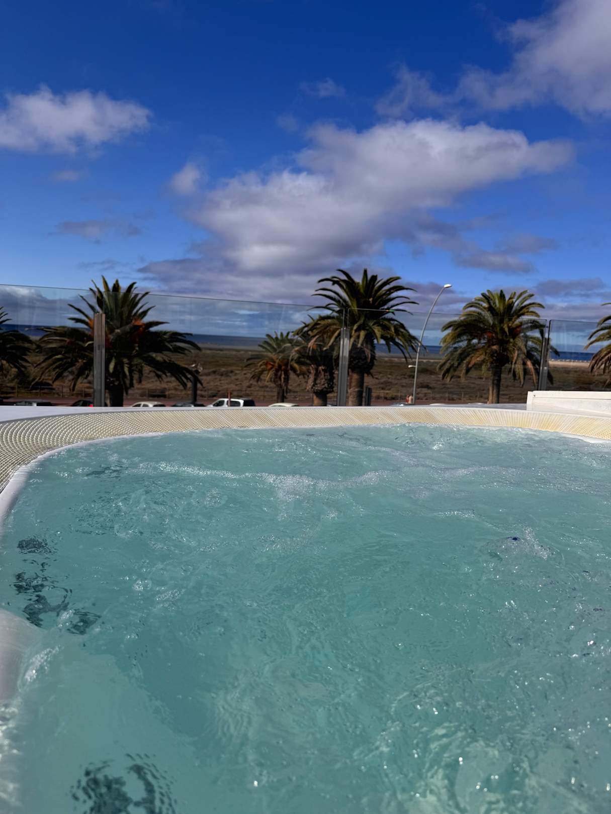 Jakuzzis auf dem Dach mit Blick aufs Meer. Für jeden zugänglich