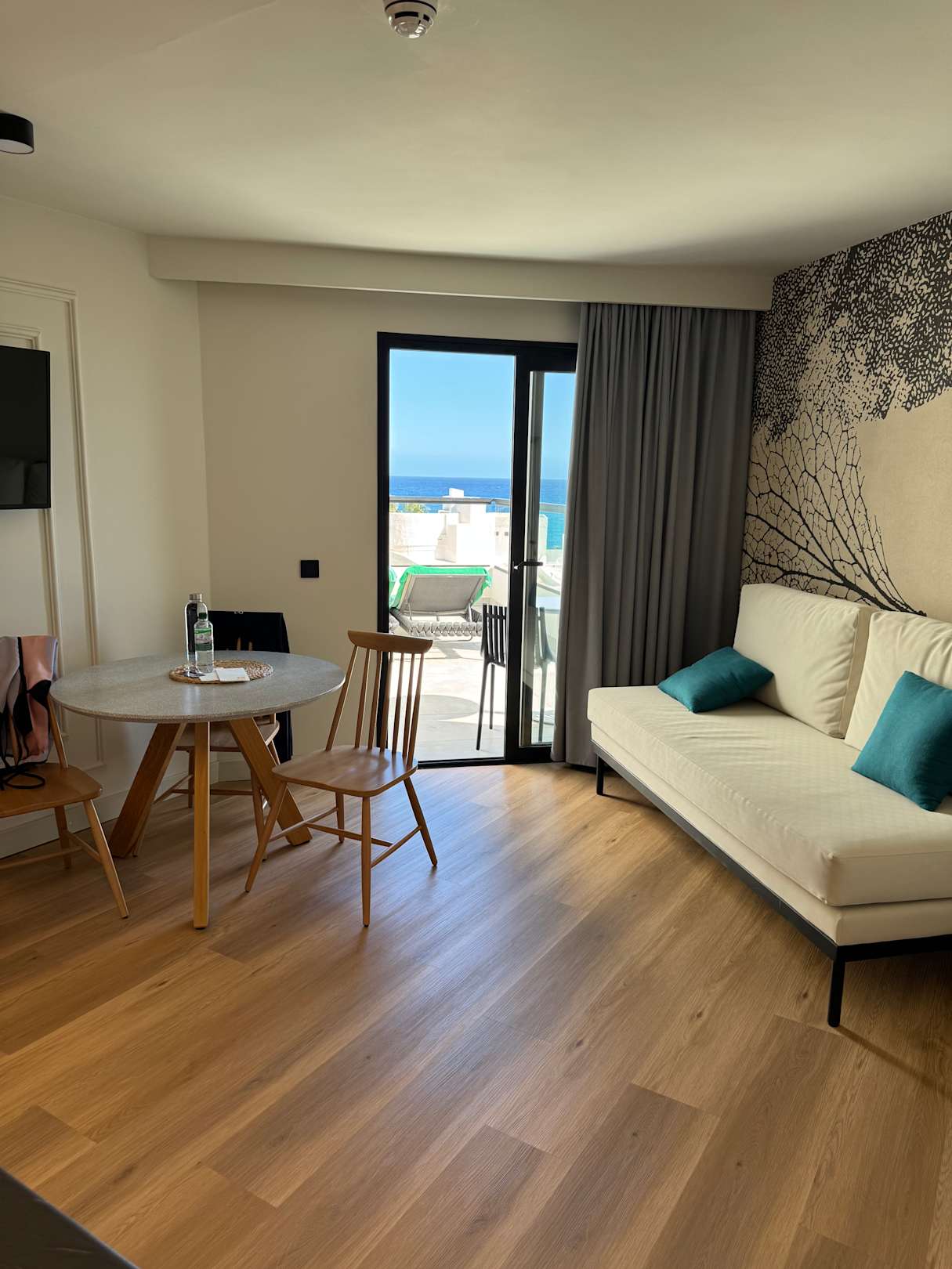 Wohnbereich mit Schlafcouch und Flachbildfernseher