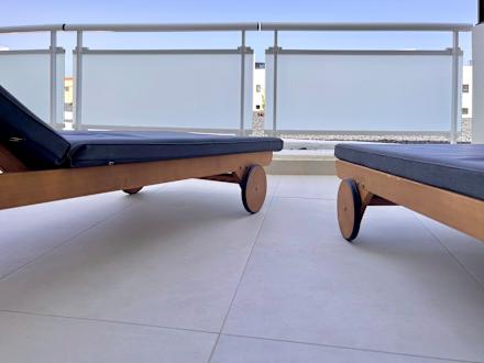 Holzliegen mit hochwertigen Auflagen kennen wir sonst nur aus 5-Sterne-Hotels.