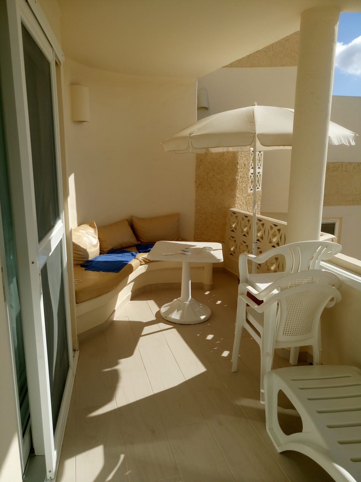 Hier ist die einzige Möglichkeit um am Tisch zu essen, wenn man mit 4 Personen anreist, wird das sehr eng. Für 2 Personen ist der Balkon aber ausreichend