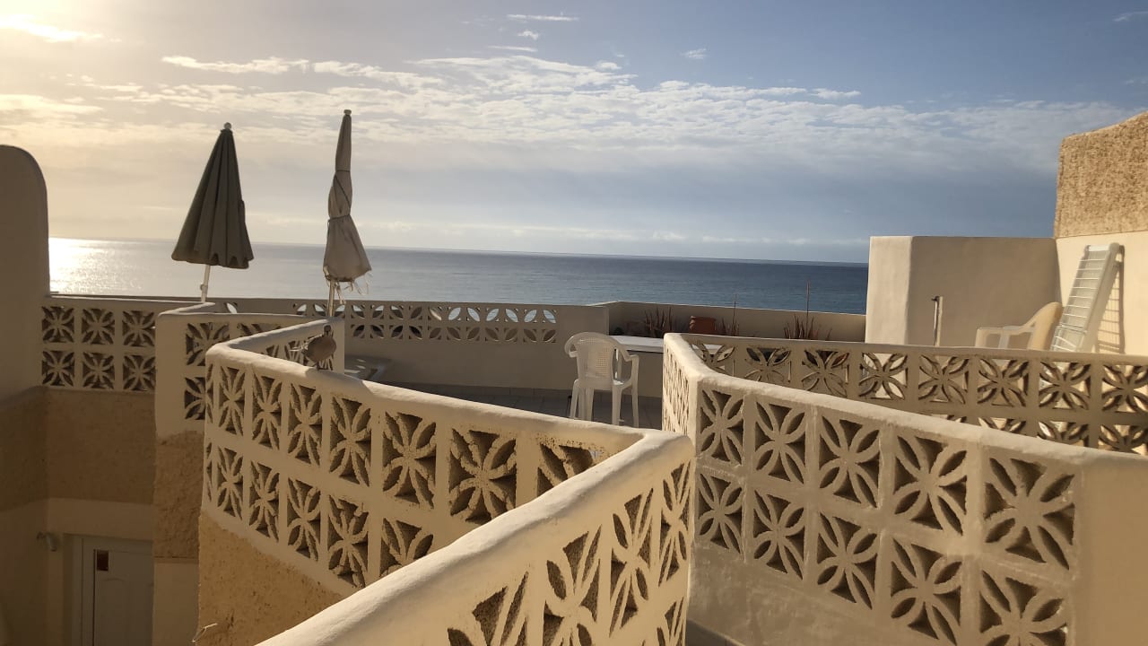 AusblickDiese große, schöne Dachterrasse gehört zum Appartement - hier bei Sonnenaufgang. Von hier aus hat man einen herrlichen Blick auf das Meer.