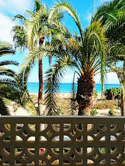 Blick vom Balkon auf den Strand