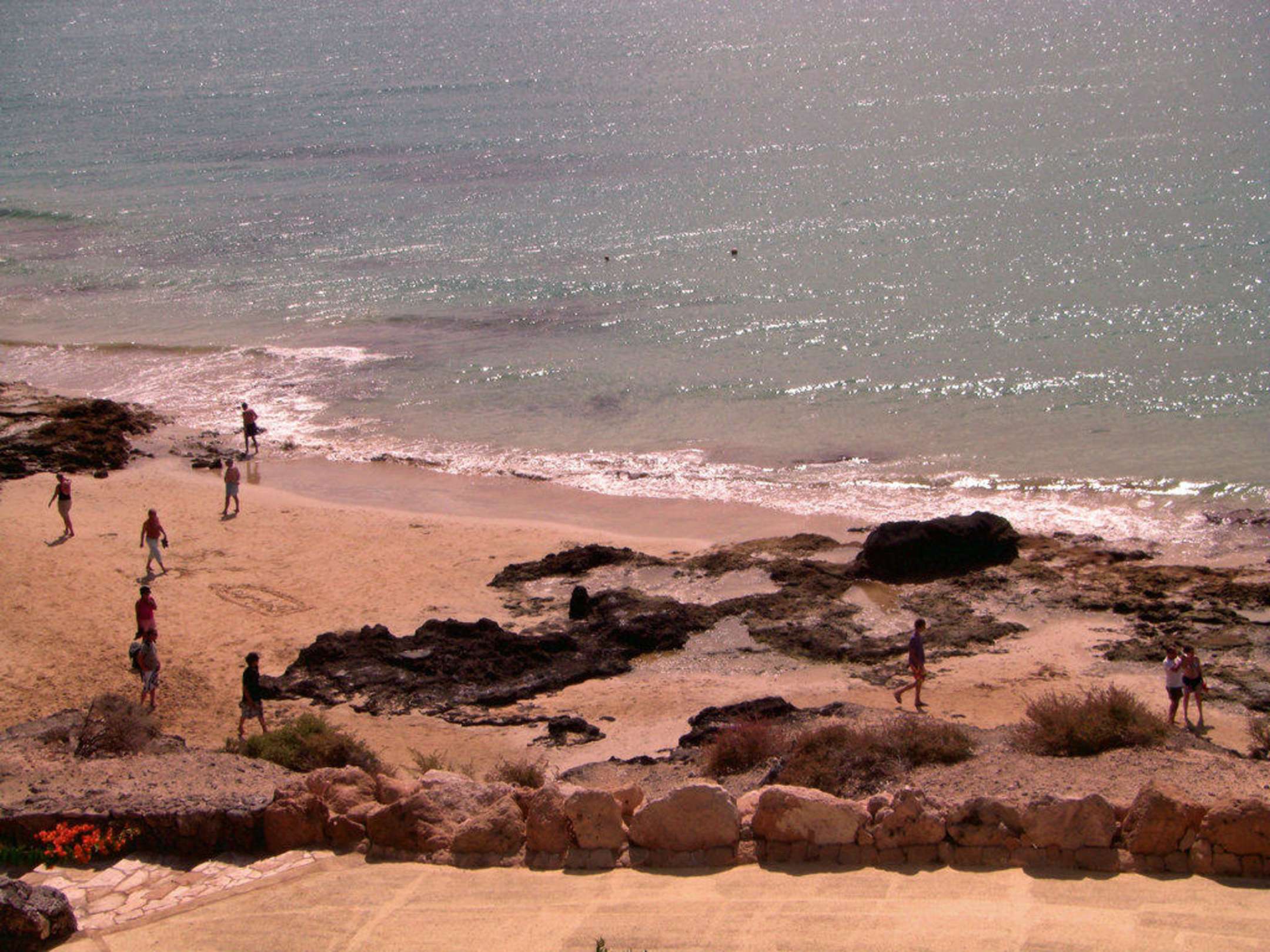 Blick von der Gartenanlage zum Strand hinunter