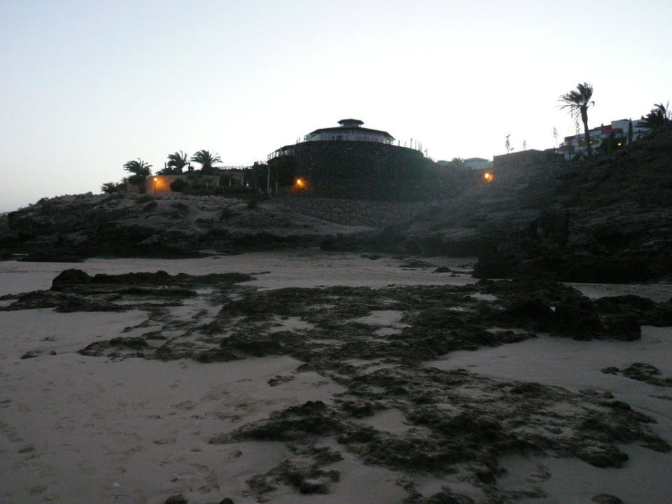 Der Blick von der Bucht aufs Hotel bei Ebbe