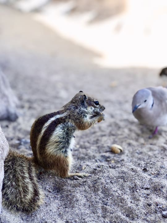 Außerhalb des Hotels allgegenwärtig: Atlashörnchen und Tauben.