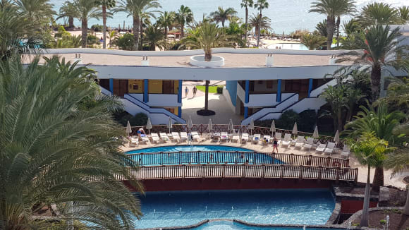 Blick vom Hauptgebäude Richtung Pool/Und Strand