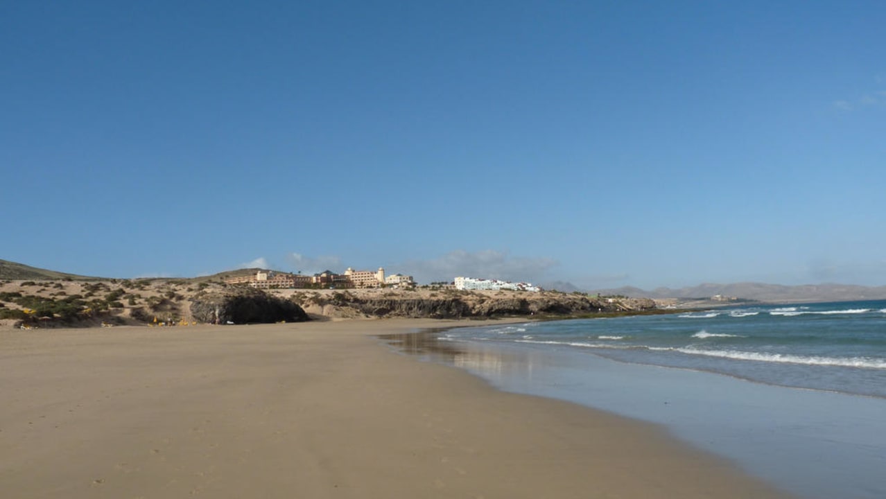 Strand rechts mit Blick aufs Hotel