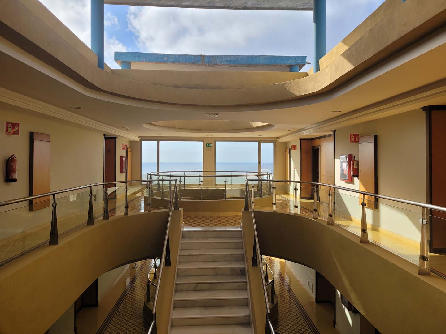 Hotelarchitektur, sehr offen, hellhörig, manchmal auch windig durch den Durchzug