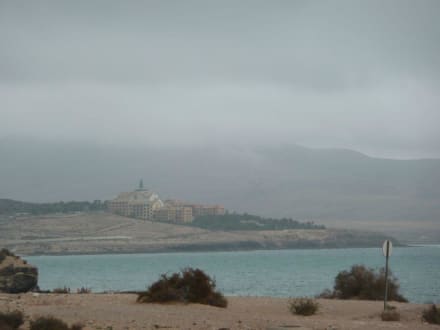 Hotel Rio Calma aus einiger Entfernunggute zu sehen, das nichts drum rum ist und dass dort kein Strandabschnitt ist