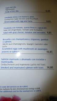 Roomservice Karte