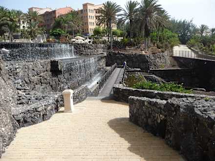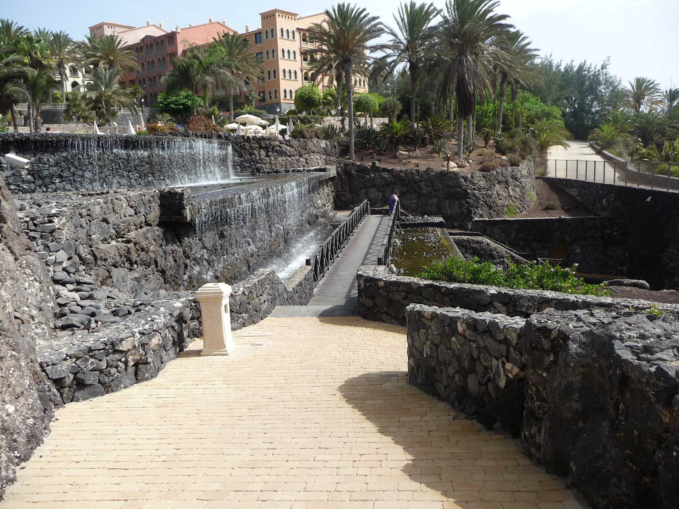 Brücke mit laufendem Wasserfall in die Lagune