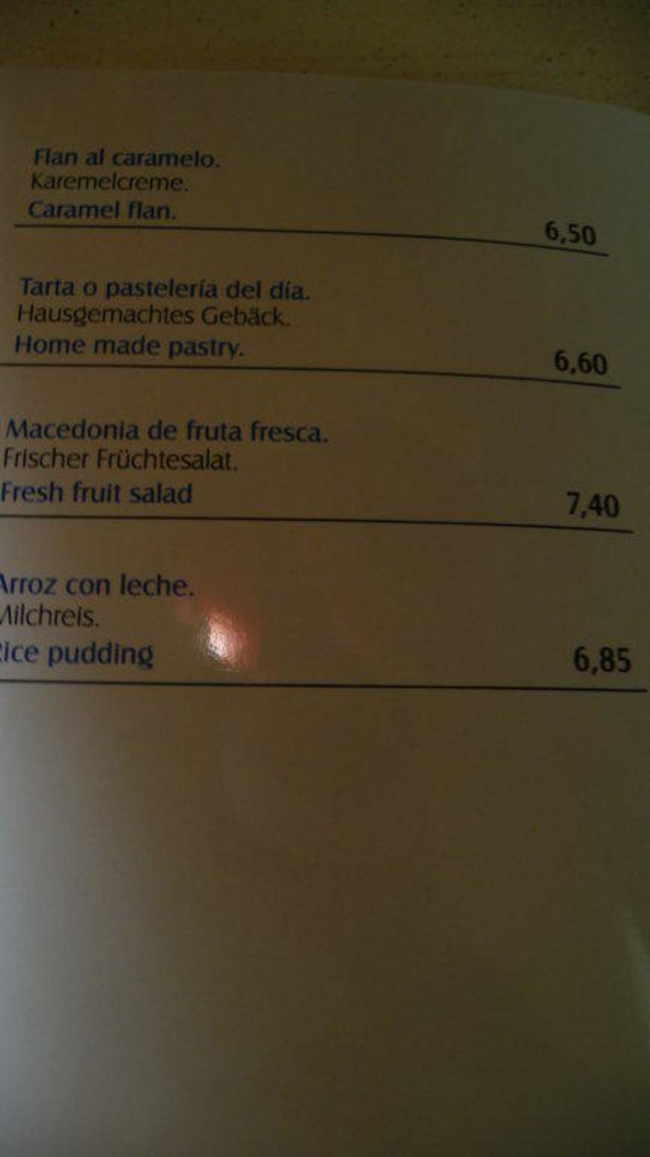 Roomservice Karte