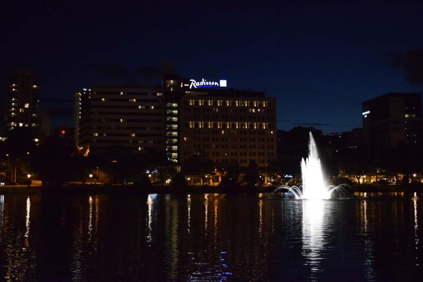 Hotelgebäude vom Stadtpark aus gesehen - bei Nacht...