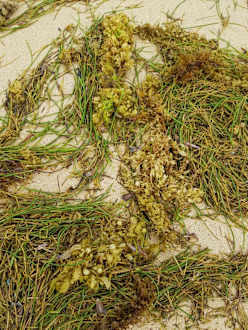 Gleiches Bild jeden Tag: Unmengen an Seegras werden täglich am Strand angespühlt. Riecht nicht gut, sieht nicht gut aus - will man so im Urlaub nicht haben.