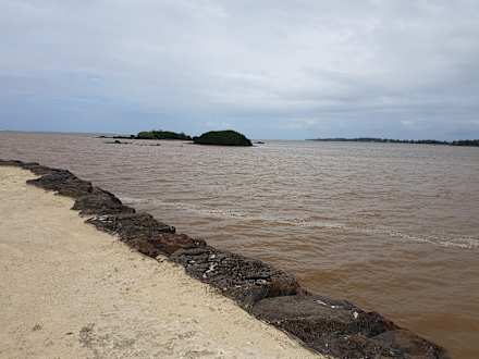 Das Meer nach einem Ungewitter, wenn der nahe gelegene Fluss ins Meer fliesst