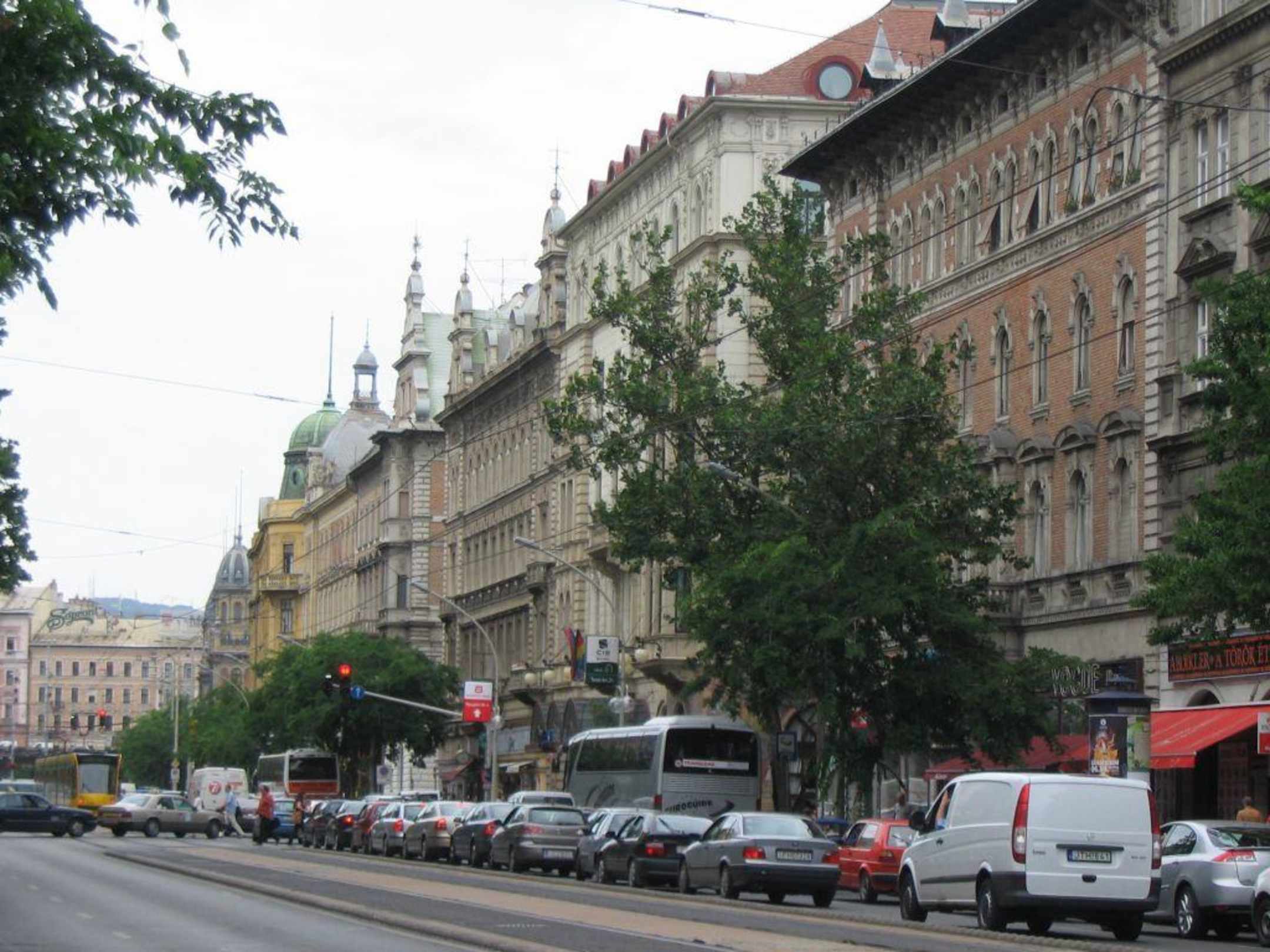 In front of the hotel, on Grand Boulevard, in direction to Buda side of Budapest.