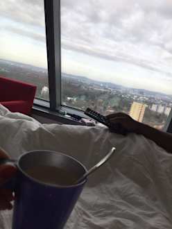 Ausblick vom Bett am Morgen, Kaffeemaschine vorh.