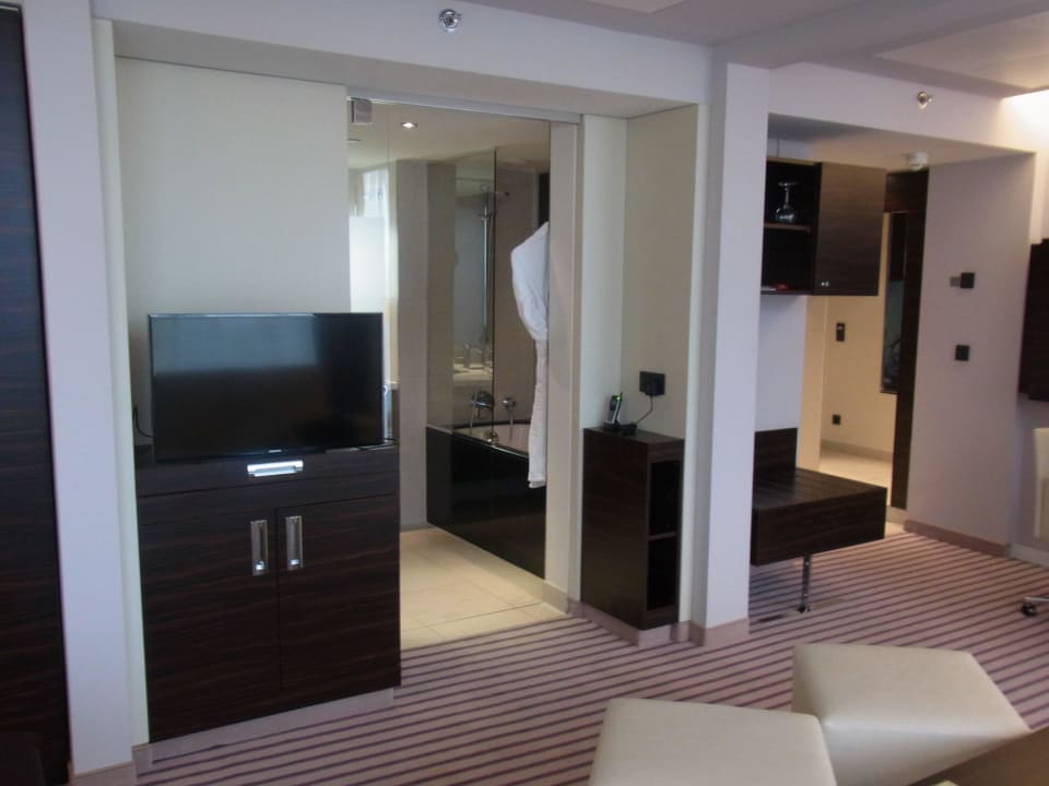 Blick vom Sofa zum Bad und Flur