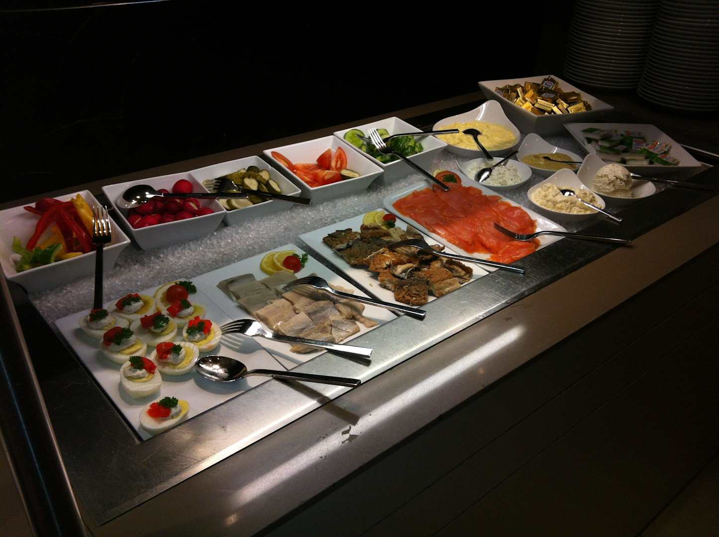 Fisch, Gemüse, gefüllte Eier