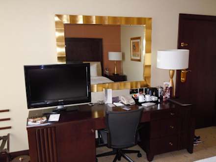 Schreibtisch mit Minibar und TV