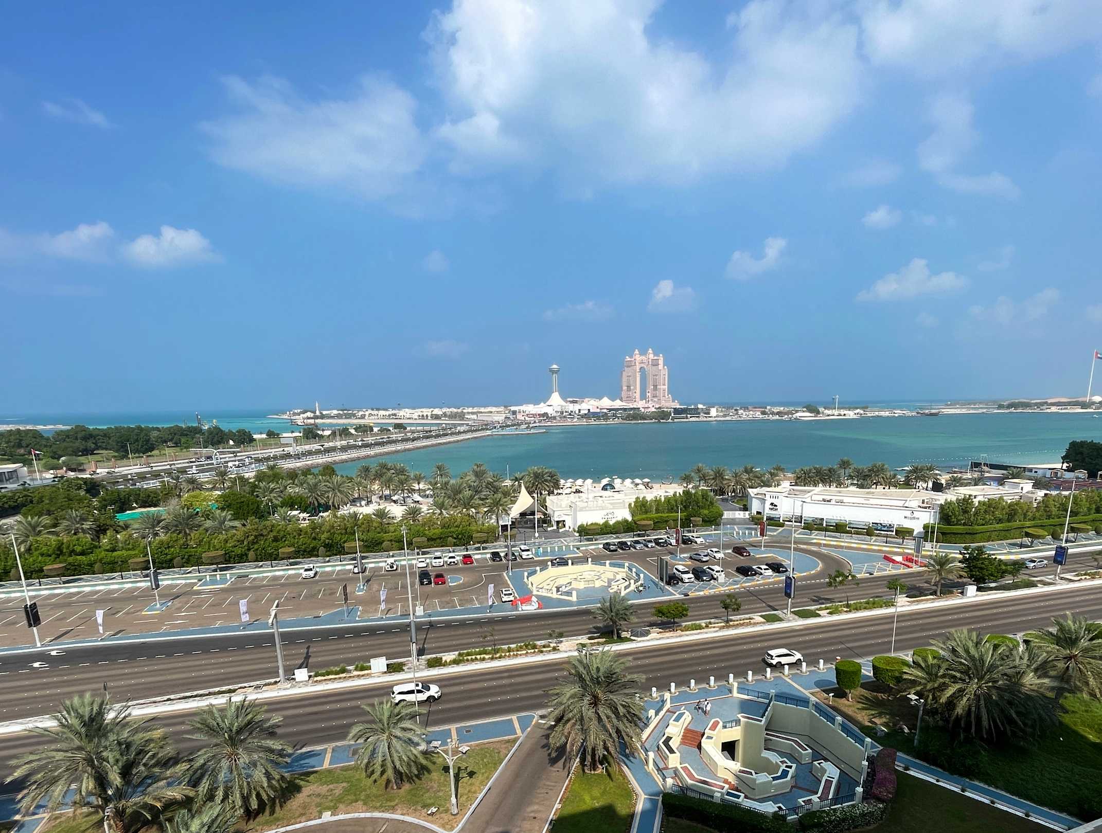 Ausblickvom Superior DZ MB Ausblick zum West Bay Strand unten vor und hinter der Straße die Unterführung zum Strand