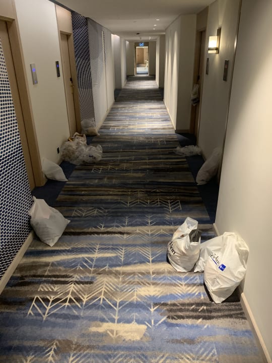 Hotelflur am Morgen ! und so sieht es jeden Tag da aus, Mülltüten gemischt mit gewaschener Wäsche