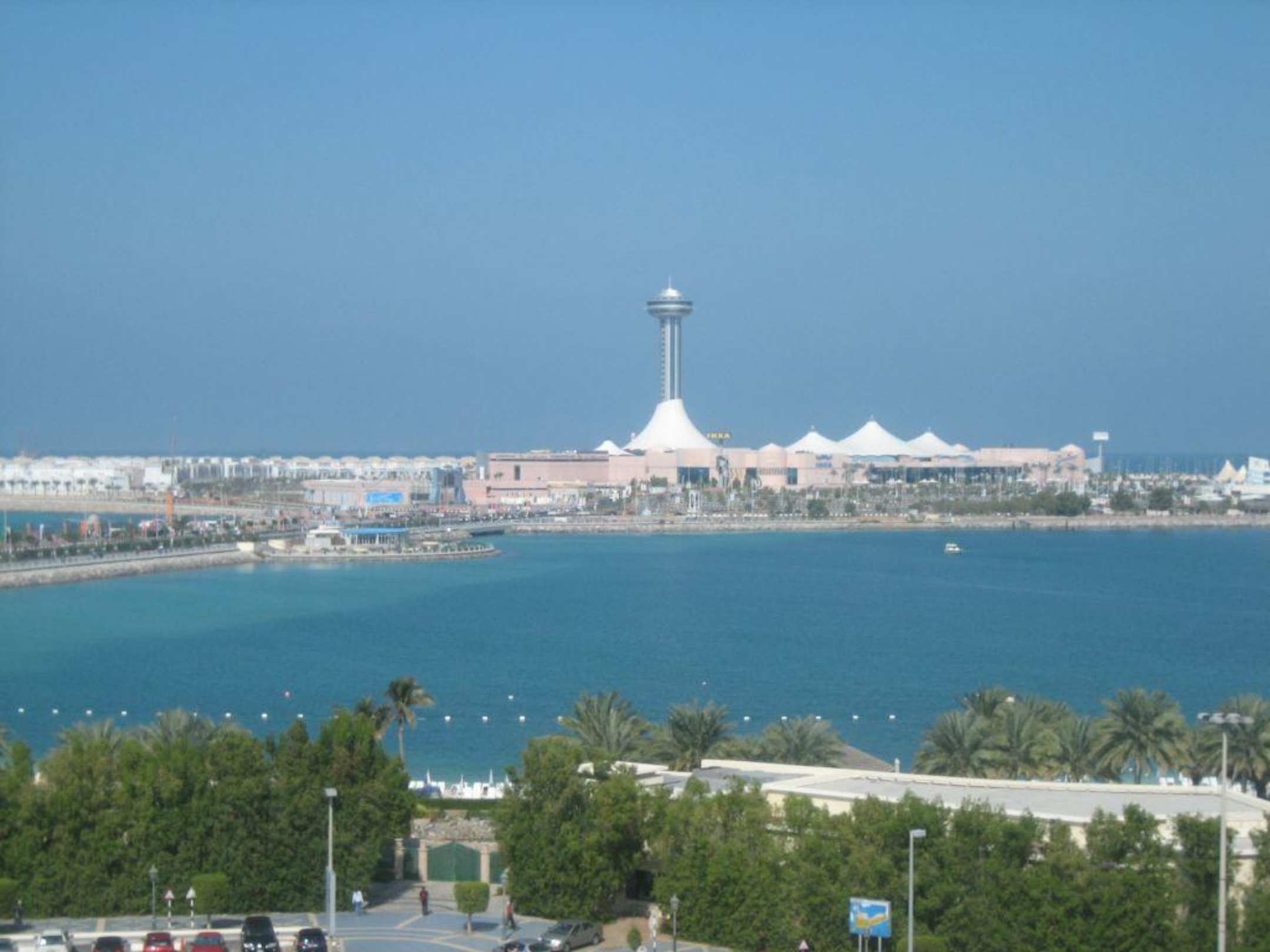 Bilck aus dem HotelzimmerIm hintergrund die Marina Mall und im Vordergrund der Hoteleigene Beachclub