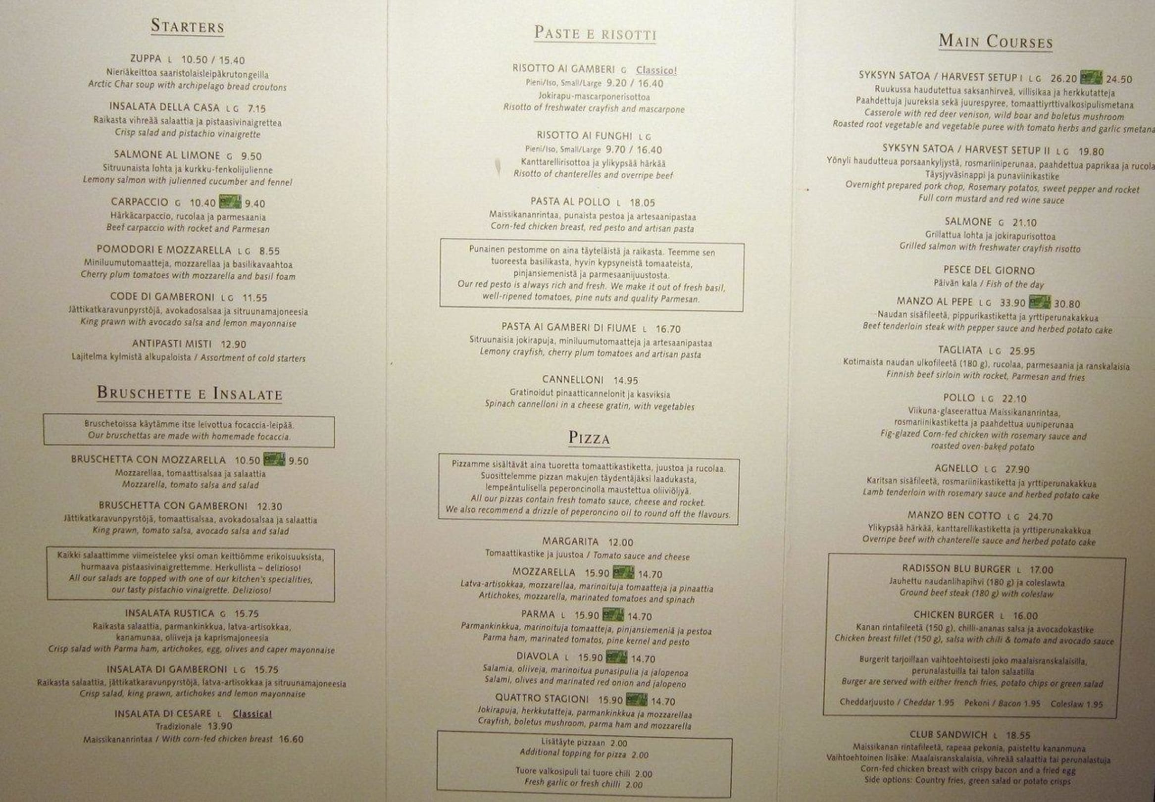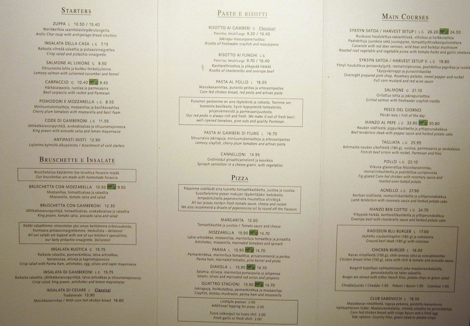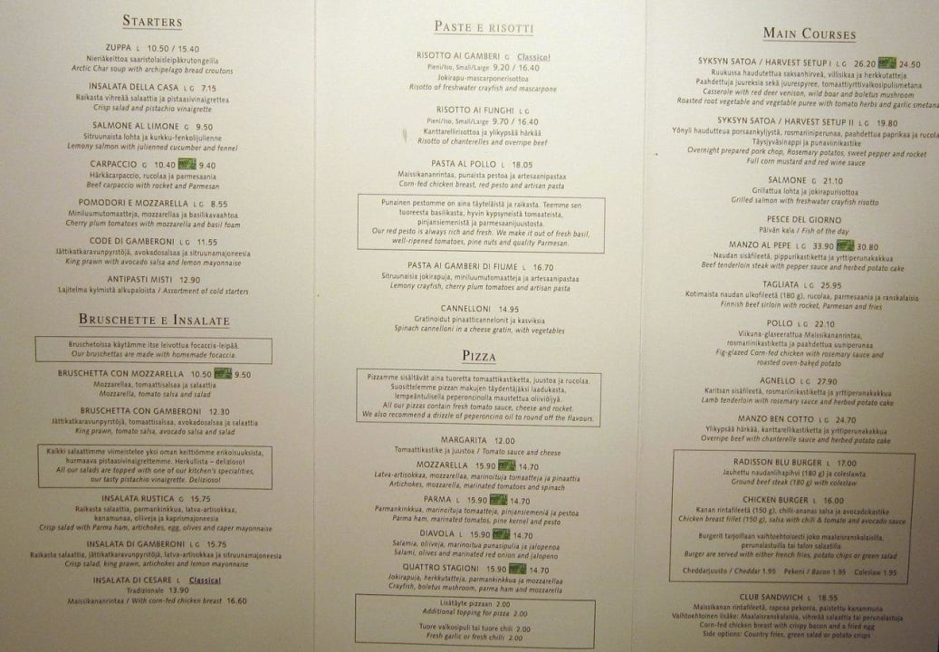 Restaurant menu