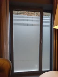 "Zimmerausblick" auf eine Sichtblende. Daher war das Zimmer immer dunkel, auch tagsüber.
