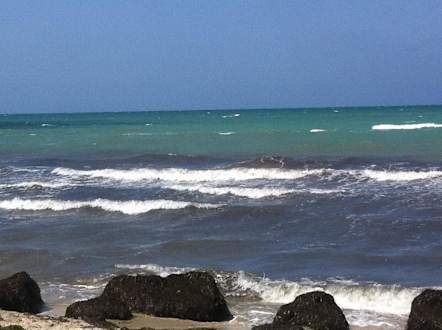 Strand voll mit Algen