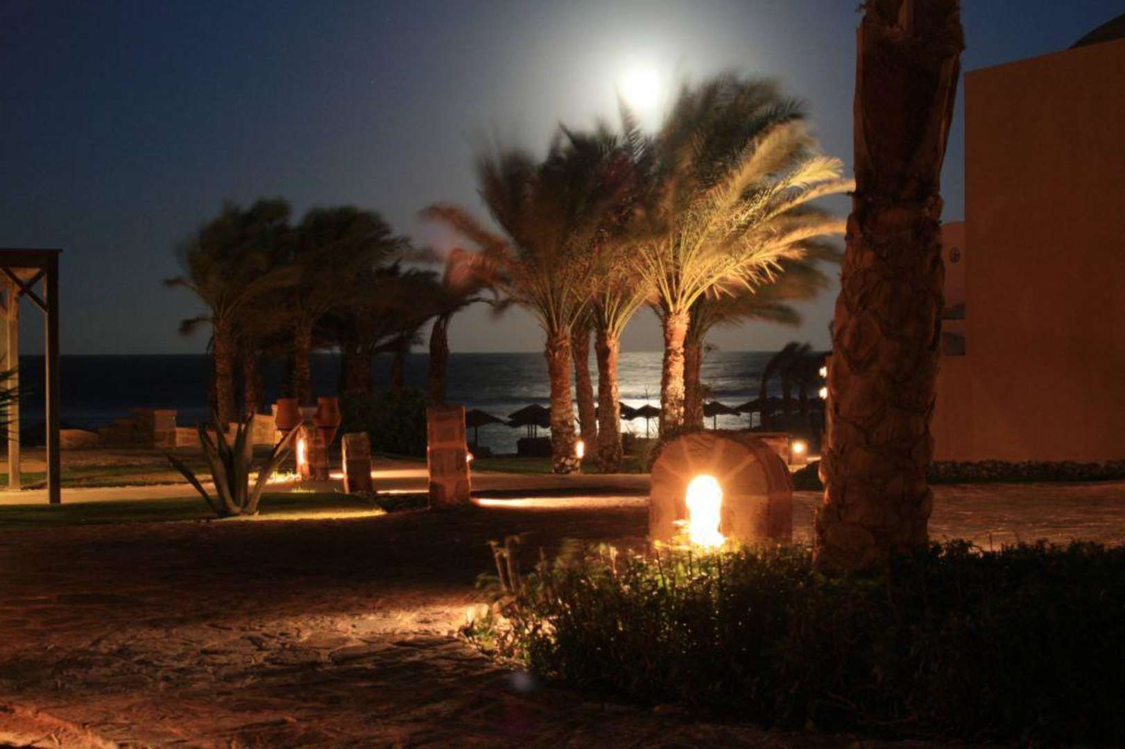 Mondschein mit Blick vom Zimmer zum Strand