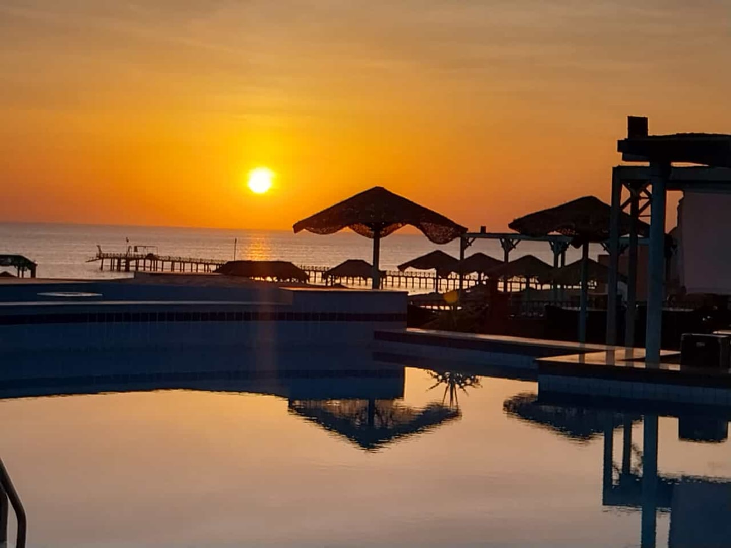 Sonnenaufgang Blick vom Pool auf das Meer